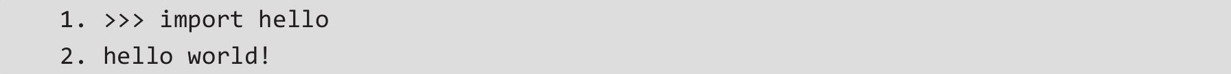 可以看到,通过关键字import导入hello模块后,也就意味着调用了hello.py文件,结果输出“hello world!”。这便是一个基础模块的例子。