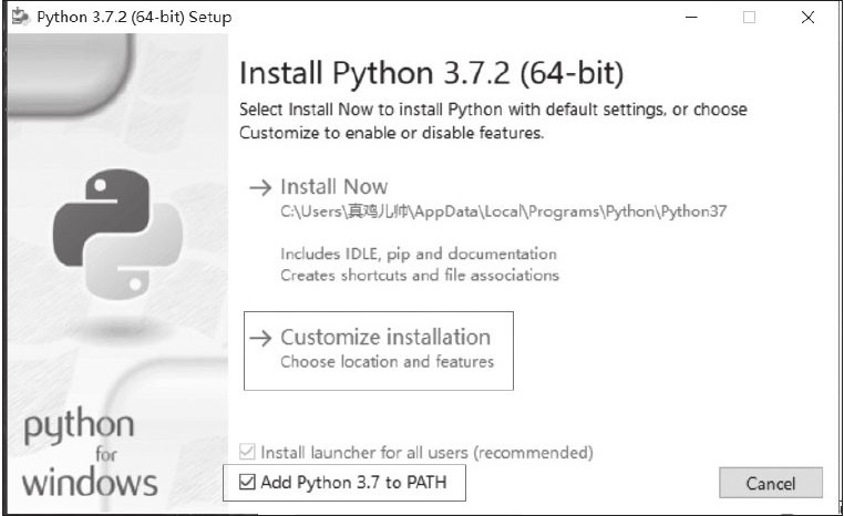 图3-1 选中【Add Python 3.7 to PATH】复选框