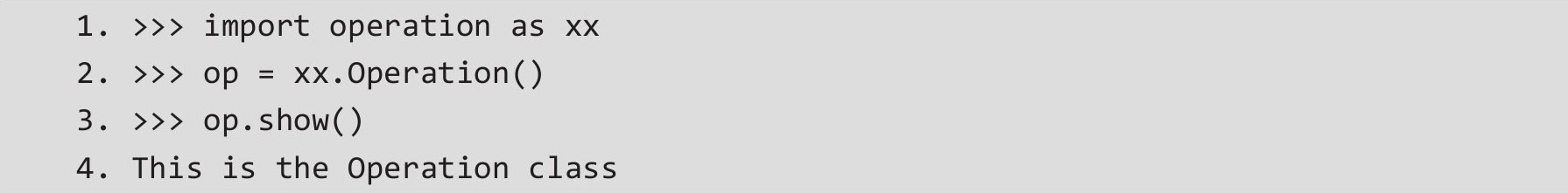 可以通过语句“import模块名as别名”,将要导入的模块取一个别名,防止模块名和后续的名字冲突。如把上例的模块operation改名为xx,示例代码如下。