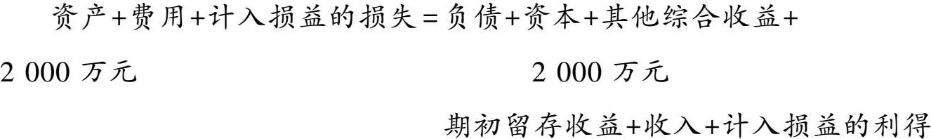 例如,股东投入2 000万元银行存款设立有限责任公司,这一经济业务会导致会计恒等式中左边的资产与右边的资本同时增加2 000万元,等式关系不会因此而改变。