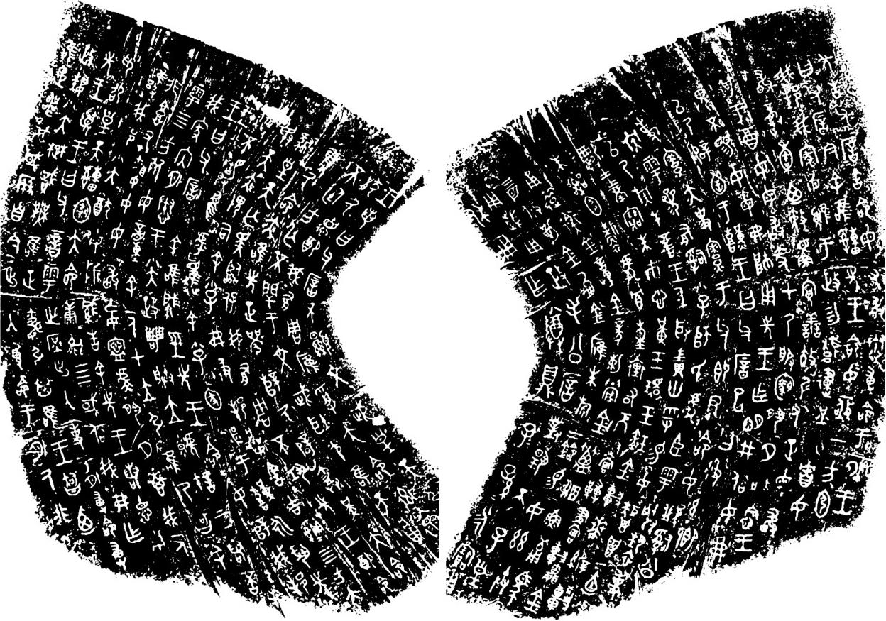 西周时期的《毛公鼎》(图2-11),是周宣王(?—前782年)时期的一件宗庙礼器(祭器),在目前所见的青铜器铭文中篇幅最长,接近五百字。