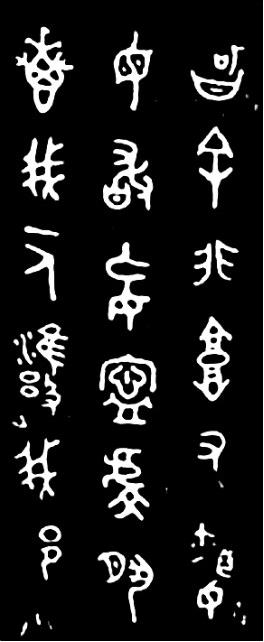 最早出现的是篆书。广义而言,甲骨文也属于篆书,是最早出现的一种。商代既有甲骨文,也有金文。甲骨文是用刀刻在龟甲或兽骨上的,而金文是铸造在青铜器上的,由于出现在不同的载体上,即使是同一时期的文字看起来也是有差异的(图2-7、2-8)。