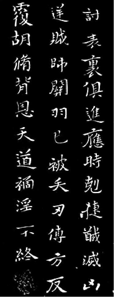 三国时魏国的钟繇,被称作“楷书之祖”,因为他把楷书进一步规整化了。尽管已经规整化,但是钟繇的楷书(图2-31)跟我们通常对楷书的印象还是有差别的,它还带着一些隶书的笔意和形体,扁扁的,同时也带着行书的“潦草”笔意,这是早期楷书的特点。