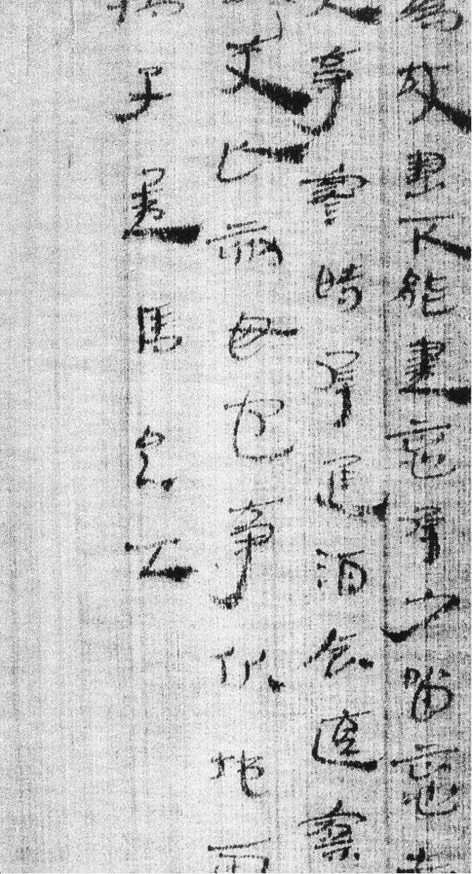 在西汉晚期,除了隶书简,同时也出现了很多草书简。图2-27是江苏连云港尹湾出土的西汉草书简的一个局部,释文为“然而大怒张目阳(扬)麋(眉)口遂相拂伤亡乌”。所以,在隶书之后出现的是草书。这与很多人预想的不一样,很多人以为草书的出现是在楷书、行书之后,这是对文字和书法发展历史的误解。