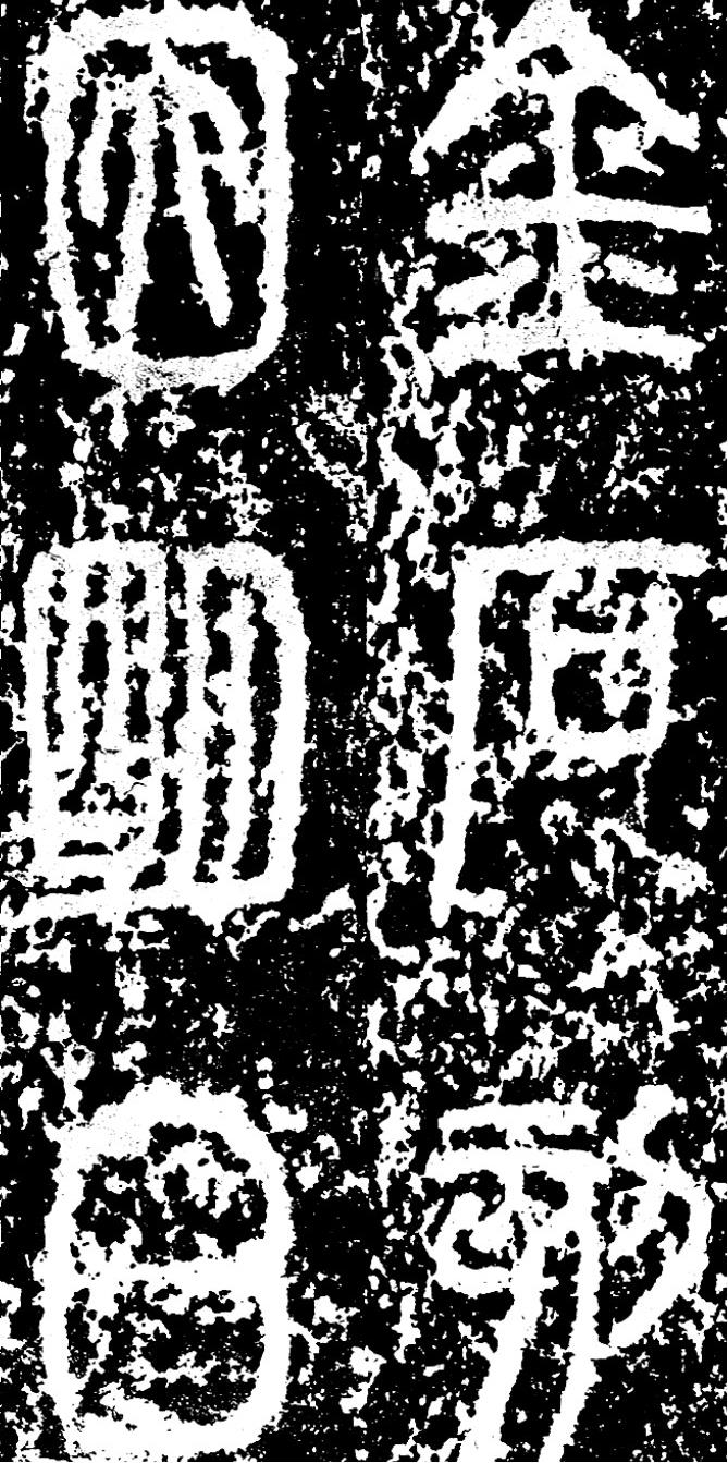 从西周时期的《毛公鼎》铭文(图2-12),到春秋战国时期的《秦公簋》铭文(图2-13)、《石鼓文》(图2-14),再到秦朝统一文字时的《泰山刻石》(图2-15),这几件里程碑式的书法作品大致反映了几百年间从金文逐渐演变到小篆的过程。这个演变过程中发生的字形变化可以概括为:1.字形结构简省;2.线条变细,“块团”消失;3.圆弧线减少,直线增多;4.字形的外轮廓逐渐趋向齐整规则的竖长方形。