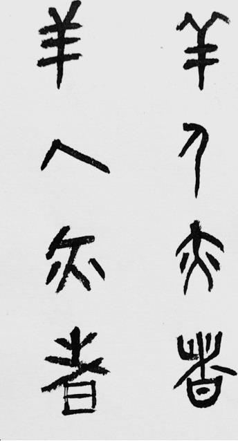 在秦朝,篆与隶是同步使用的。如“羊”“人”“亦”“者”这几个字(图2-20),既有篆书,也有隶书。又如秦时(有人认为是秦昭王时,也有人认为是秦始皇时)有一个叫“泠贤”的人,有两方印章,一方是隶书体(图2-21),一方是篆书体(图2-22)。
