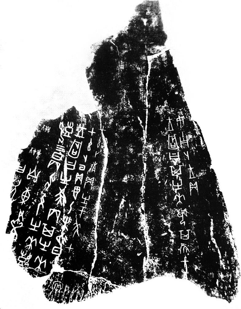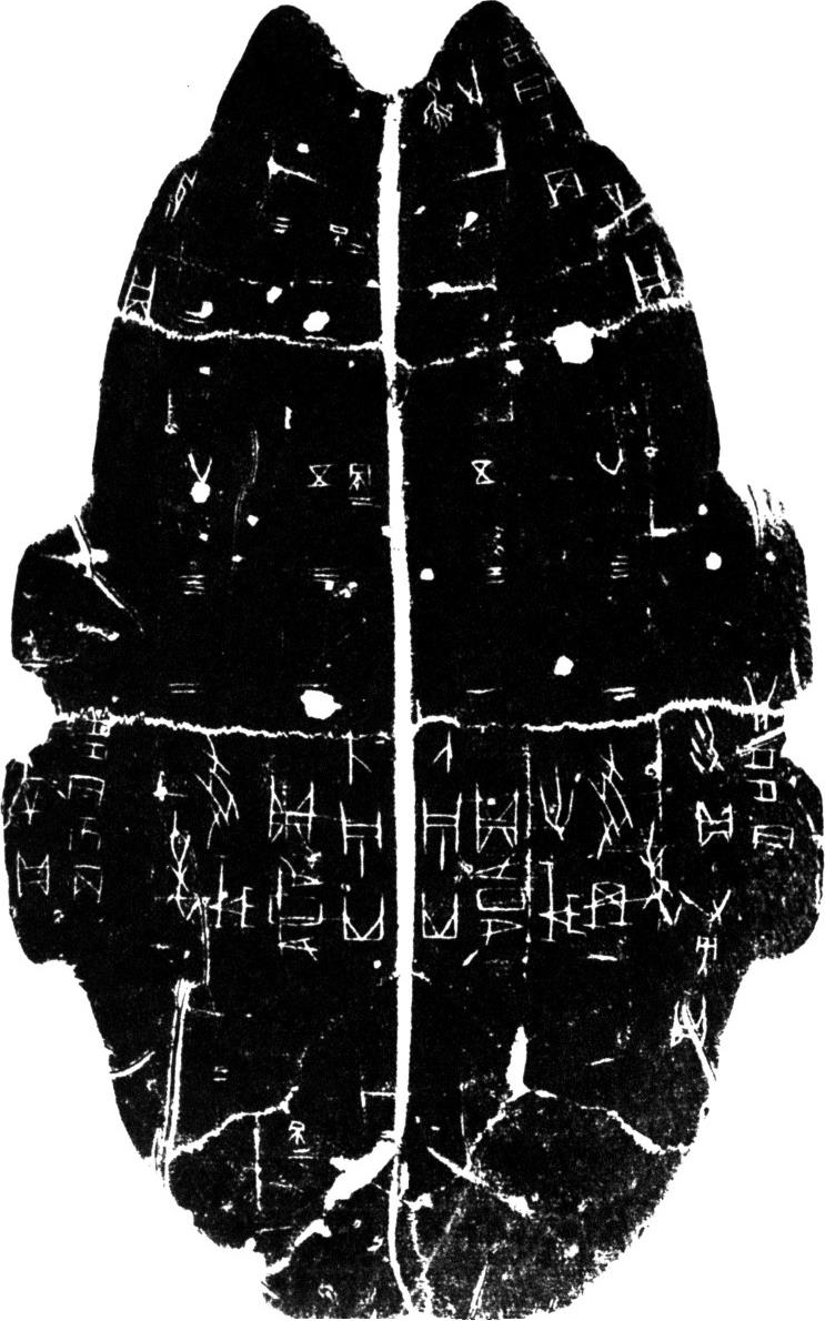 图1-6是殷商武丁时期的甲骨文,是成熟的汉字了。刻工技艺很高,站在书法的角度来看,一行一行竖下来,行气流畅。