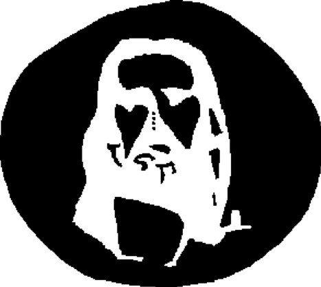 :让我们做个小实验来感受一下视觉后像:请你用力注视下面这个图形中央两个类似桃心的黑块中间竖行排列的4个小黑点30秒,然后闭上眼睛仰头朝上,眼睛再慢慢张开看天花板,试试你会看到什么——不用惊讶,这不是什么奇异现象,只是视觉后像的作用。