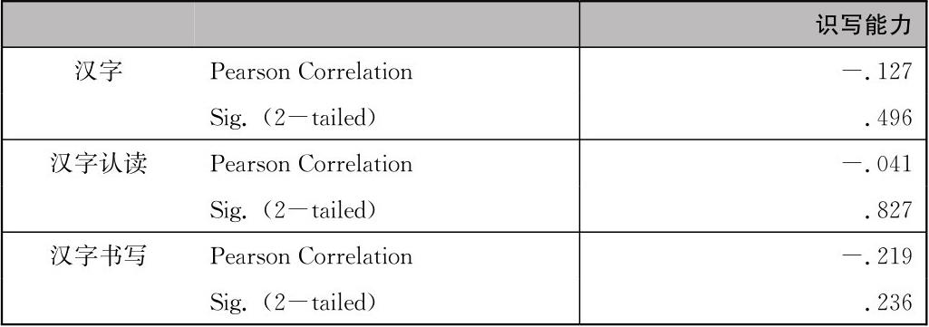 表4-3 先天识写能力与汉字习得的相关分析
