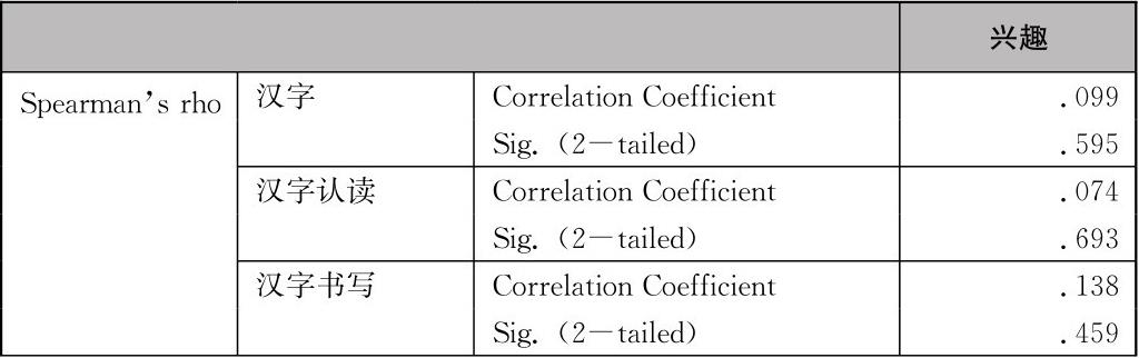 表4-4 学生学习兴趣与汉字习得的相关分析