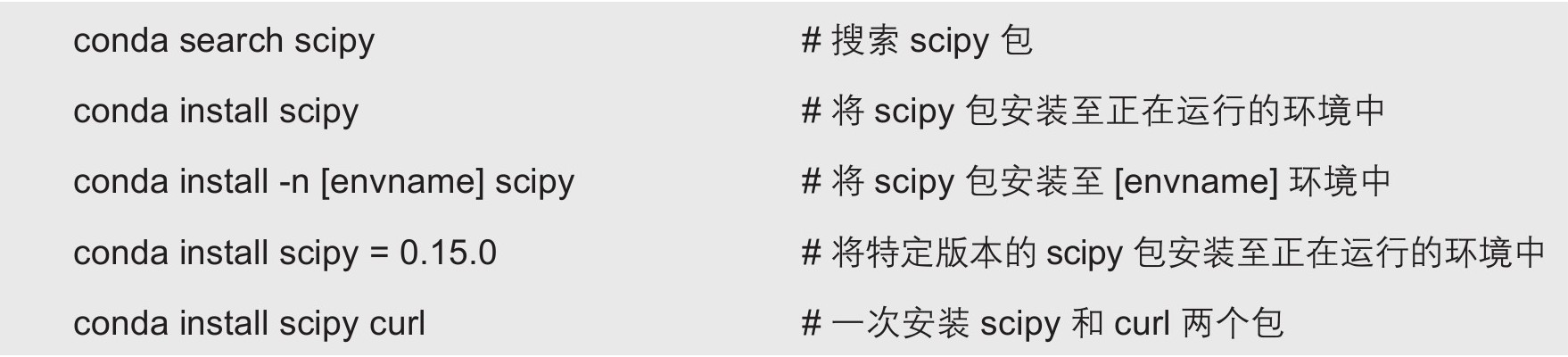 Anaconda里除Python外,还有一个非常重要的组成部分就是Conda。Conda是一个开源的软件包管理和环境管理系统,能够安装多个版本的软件包及其依赖关系。由于Conda的设计理念在于把几乎所有的工具、第三方包都当作package对待,甚至包括Python和Conda自身,因此Conda打破了包管理和环境管理的约束,能够实现各版本Python和package之间的轻松切换。这种强大的设计理念使Anaconda套件具有以下两大优势。