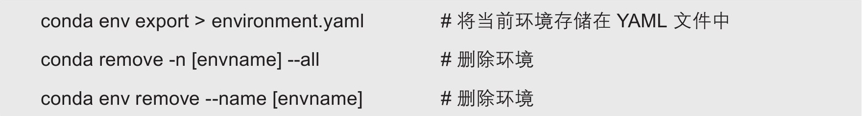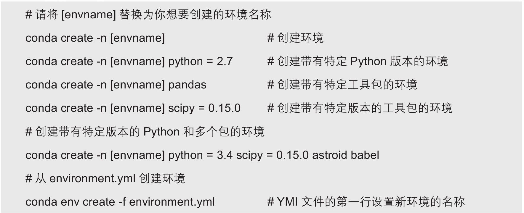 Conda具有强大的环境管理能力,从而使我们可以创建、导出、删除和更新在其中安装了不同版本的Python或软件包的环境,并且允许我们在环境之间自由切换、共享环境文件。Conda对环境的管理主要体现在以下几个方面。