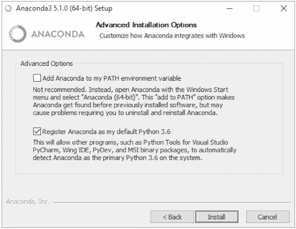 图1-2-5 Windows系统下Anaconda安装过程中需要确认的两个地方
