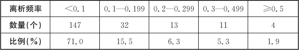 离合词家族各成员离析频率不一样,有些离析频率高,有些离析频率低甚至基本不产生离析现象。