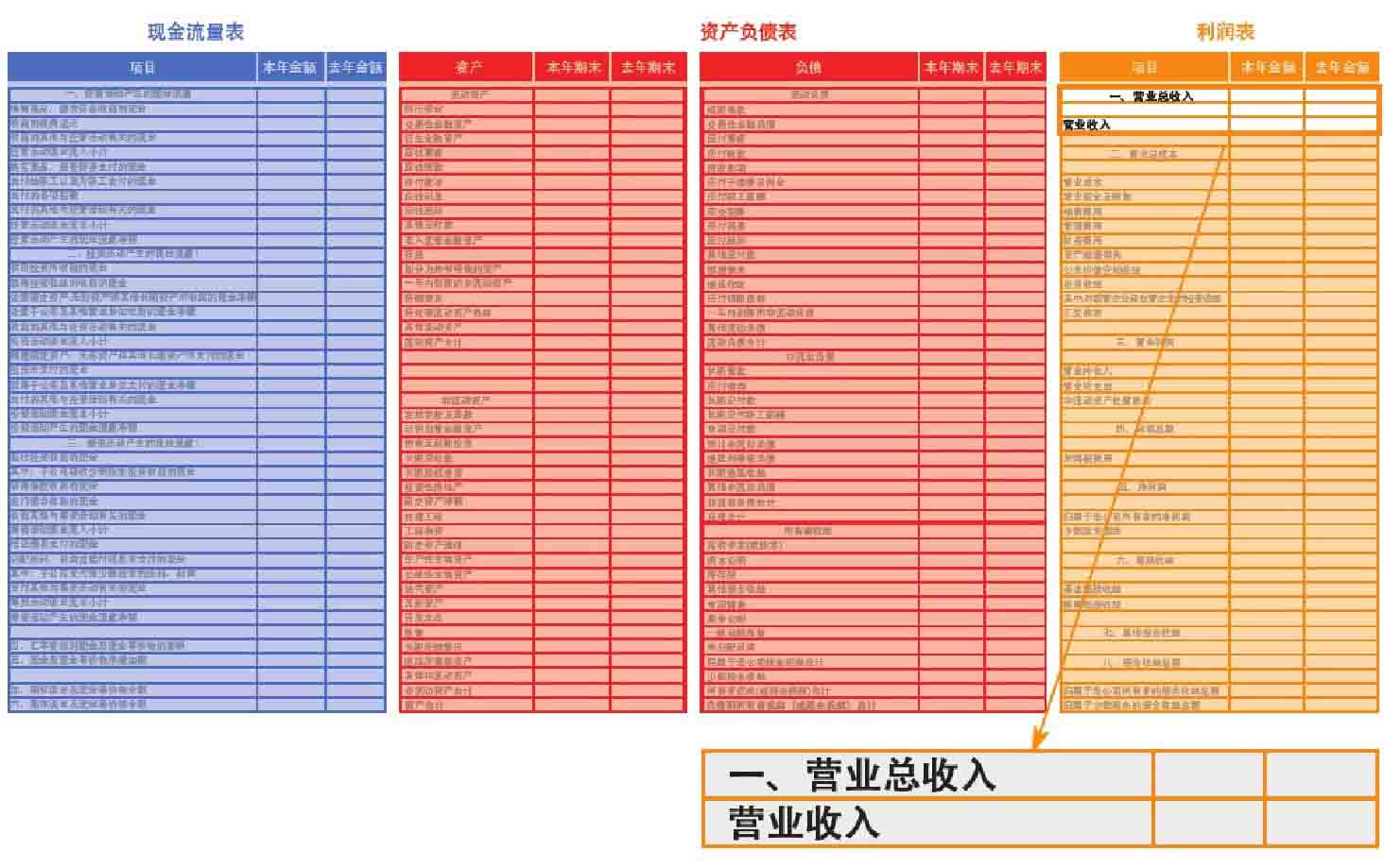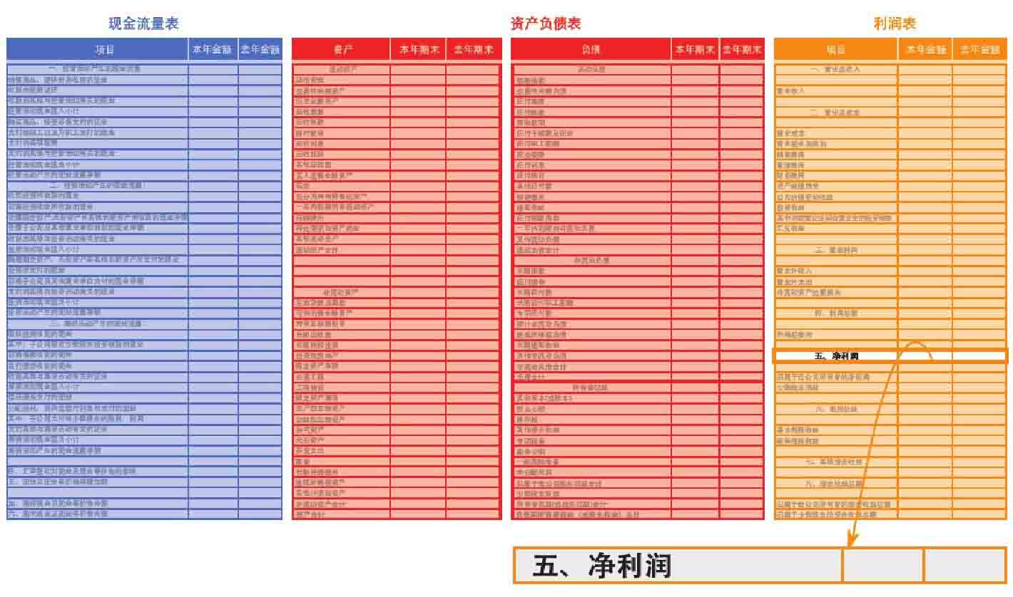 前面章节已经介绍了三大报表是跟经营管理有密切关系的,资产负债表是体检表,体现公司整体财务状况;利润表是成绩单,体现公司整体经营成果;现金流量表是钱袋子,体现公司整体现金流转。三大报表里的这几列数字是具有高度概括性的,看完后基本上就能在脑海里建立起一个轮廓。