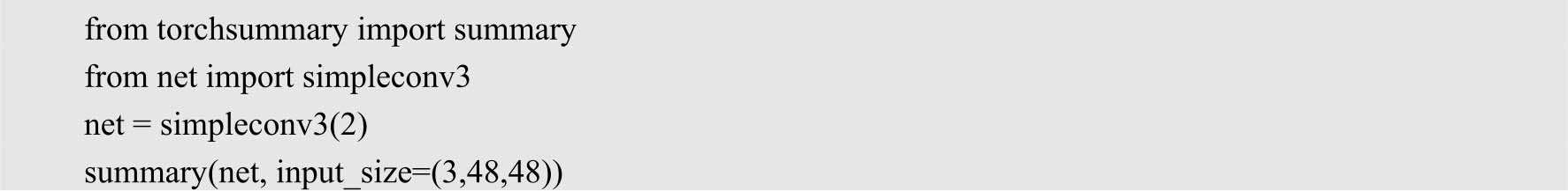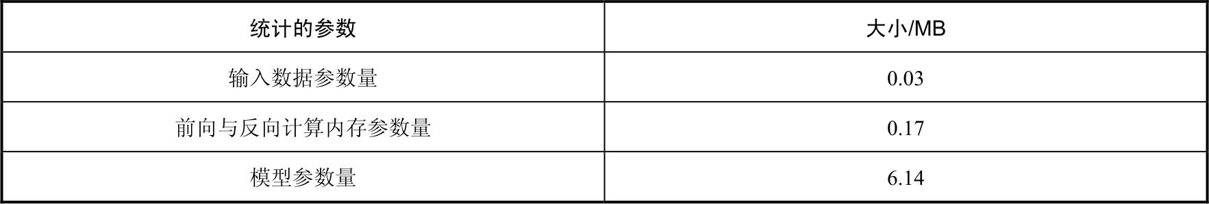 参数量小,则占用内存小,移动端使用的模型对参数量大小比较敏感。可以使用一些工具来统计模型的参数量,这里以PyTorch summary工具为例。它不仅可以统计模型的参数量,还可以统计输入数据及模型在前向运行过程中需要的参数量,使用方法如下。