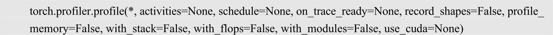 以PyTorch框架为例,torch.profiler是其自带的性能分析工具,可分析模型速度、内存等,其完整的接口如下。