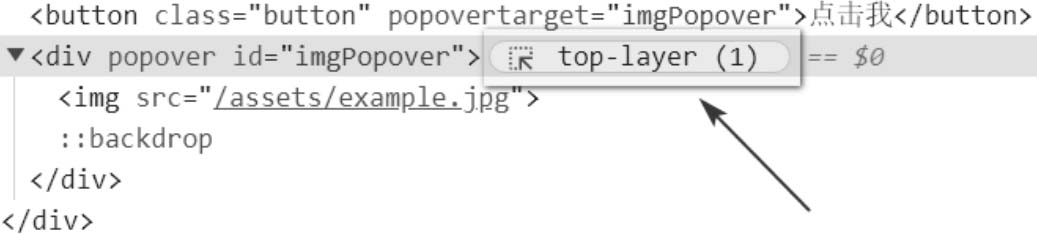 · popovertarget:指向目标弹层元素的id属性值。如果希望知道目标弹层元素的DOM对象,可以访问当前元素对象的popoverTargetElement属性获取。