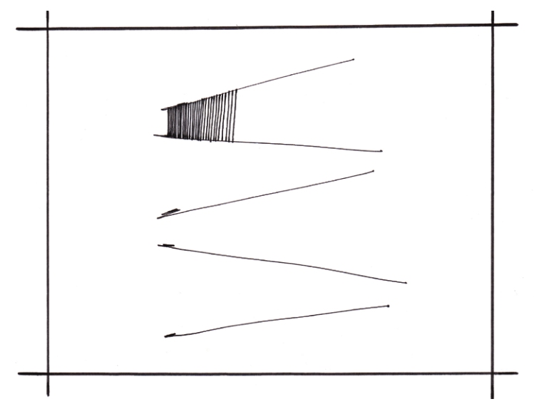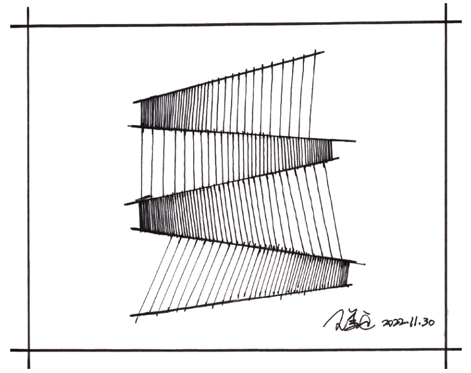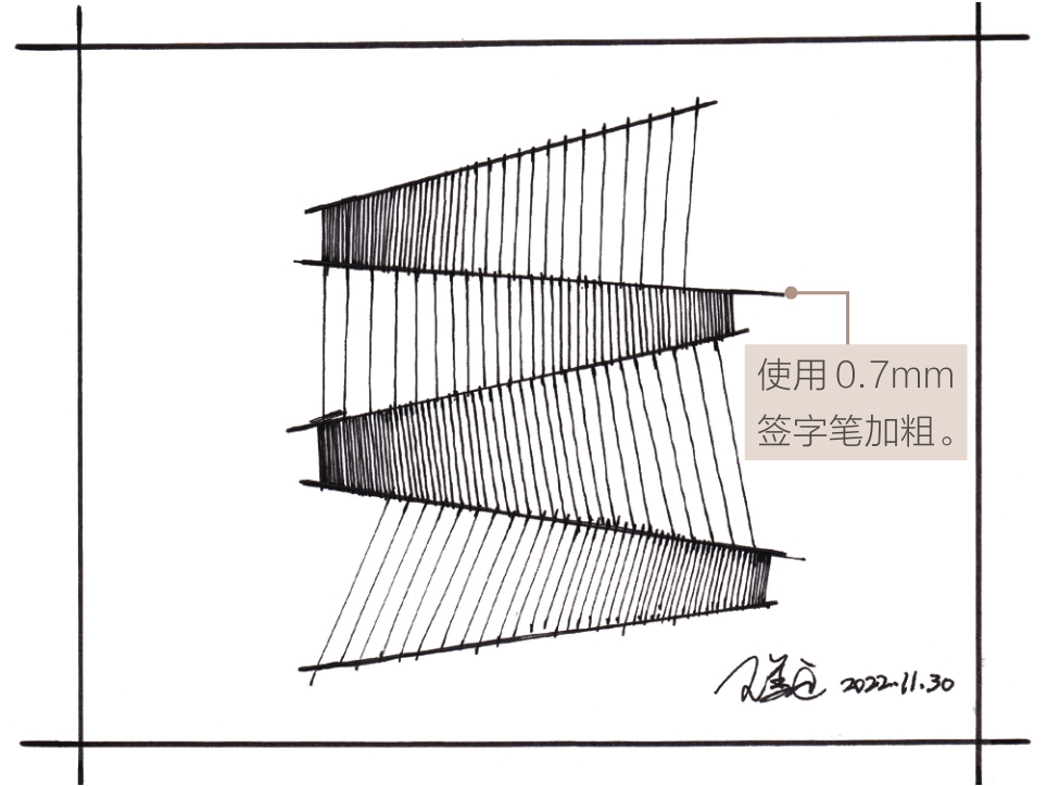 02 使用中性笔从第一个排线区较窄的左侧开始绘制,先画最密集的排线,然后逐渐向右变疏。