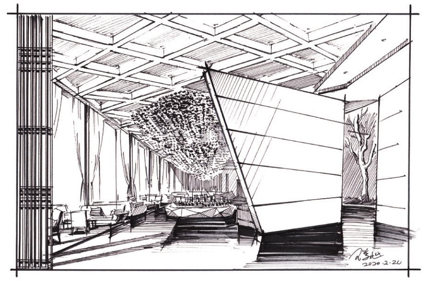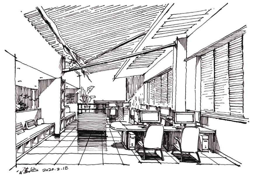 在环艺设计手绘中,并不是能画出线条即可,还需要对线条的准确度、力度、流畅度、虚实关系、疏密关系等予以掌控。线条绘制的质量是衡量一个手绘者水平高低的主要标准。