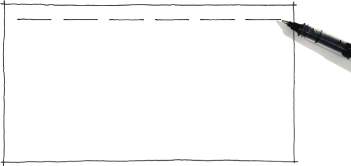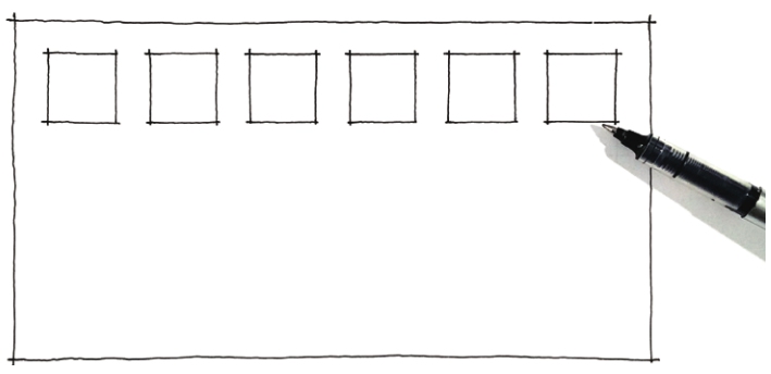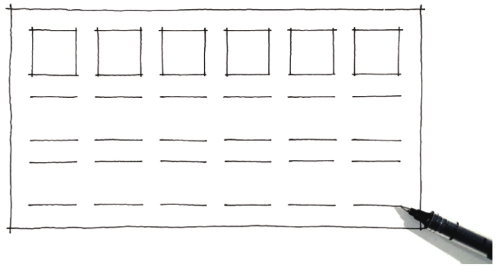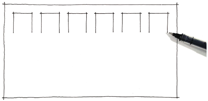 02 在长方形轮廓内,按照一定的间距,用中性笔画出所需载入正方形的顶边。