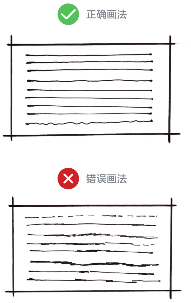 平行线常用于表达形体的结构、肌理等,是环艺设计手绘中必不可少的线条。