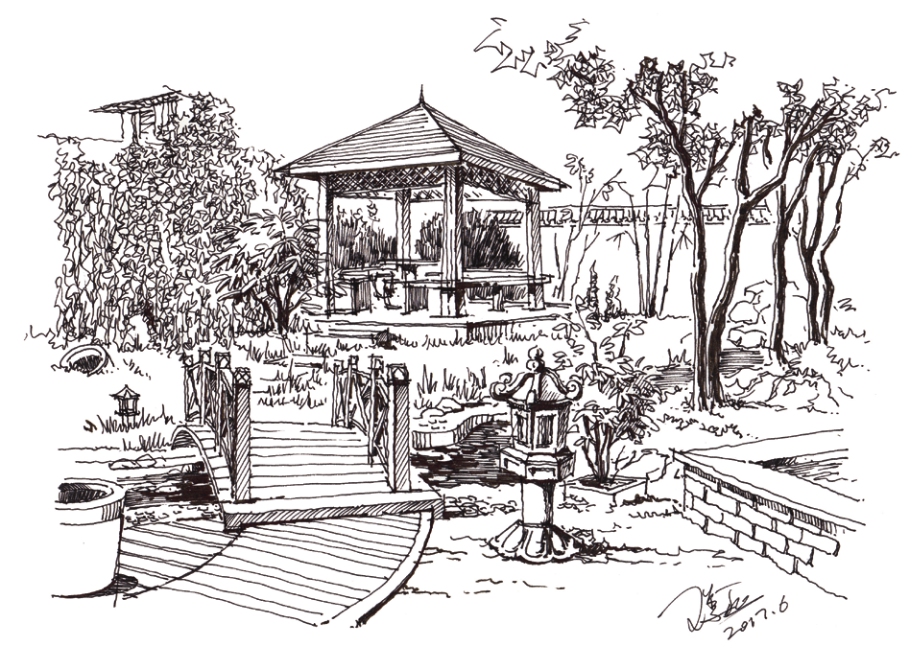 使用划线绘制景观效果图线稿。