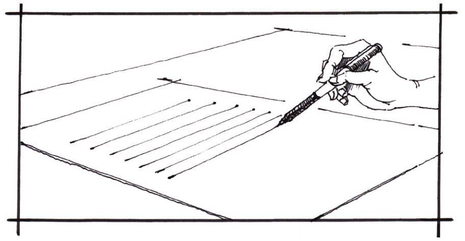 对于没有接受过专业训练的学生来说,徒手画好一条长直线很难,甚至有些不可思议,但只要抓住运笔要领,并多加训练,就可以顺利画好。运笔要领主要有以下四点: