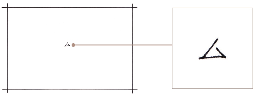 01 建议选用1/2张A4幅面的手绘纸作画。使用中性笔在纸张中心位置画出中心的三角形。