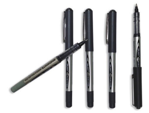 中性笔适用于手绘基础训练、草图训练、简单线稿手绘训练等。中性笔通常具有子弹头型或针管型笔尖,书写流畅,笔迹干得快,但是一般的中性笔在较厚的铅笔稿上加墨线时容易出现堵笔现象,影响线条的流畅度。为此,推荐使用白雪牌直液式中性笔,该笔可以轻松覆盖铅笔稿,且价格便宜。此外,一些进口品牌的直液式中性笔,如百乐、三菱等,也具备覆盖铅笔稿的能力,但价格稍贵。