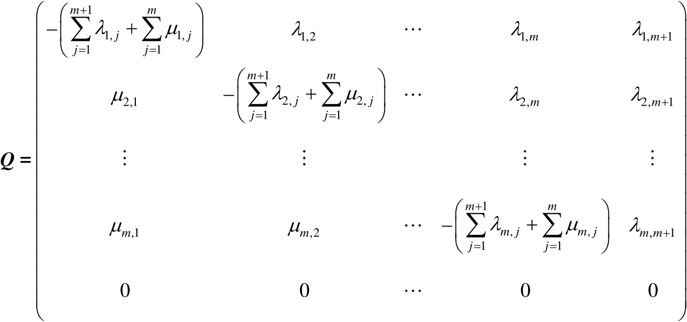 系统进入吸收态前的工作时间服从PH分布,该过程的状态无穷小生成元为