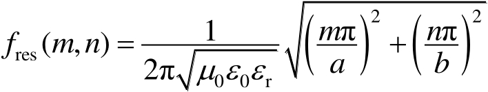 式中, μ 0 为自由空间磁导率; ε 0 为真空介电常数; ε r 为相对介电常数; a 和 b 分别为平面的长和宽。