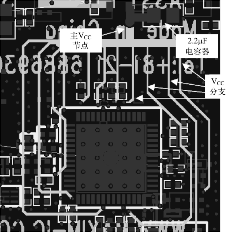 大面积的电源层能够使V CC 布线变得轻松,但是,这种结构常常是导致系统性能恶化的导火索。在一个较大平面上把所有电源引线接在一起将无法避免引脚之间的噪声传输,反之,如果使用星型拓扑则会减轻不同电源引脚之间的耦合。