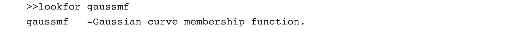 纯文本帮助信息包括help命令和lookfor命令。可由MATLAB图形界面下的Help菜单来查看help命令。lookfor命令在MATLAB路径下查询有关的关键词,例如若想查询关键词gaussmf,则可以由下面的命令完成: