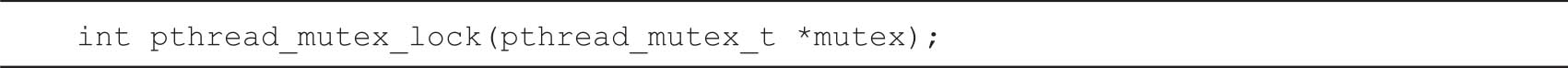初始化互斥量之后,可以调用pthread_ mutex_ lock函数来获取互斥量锁,将互斥量设置为锁定状态。pthread_mutex_lock函数定义如代码清单1-14所示。