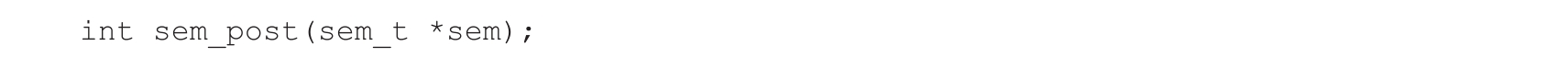 sem_post函数会把sem引用的信号量的值加1,函数定义如下所示。当有一个线程阻塞在这个信号量上时,sem_post函数会把处于阻塞状态的线程唤醒。