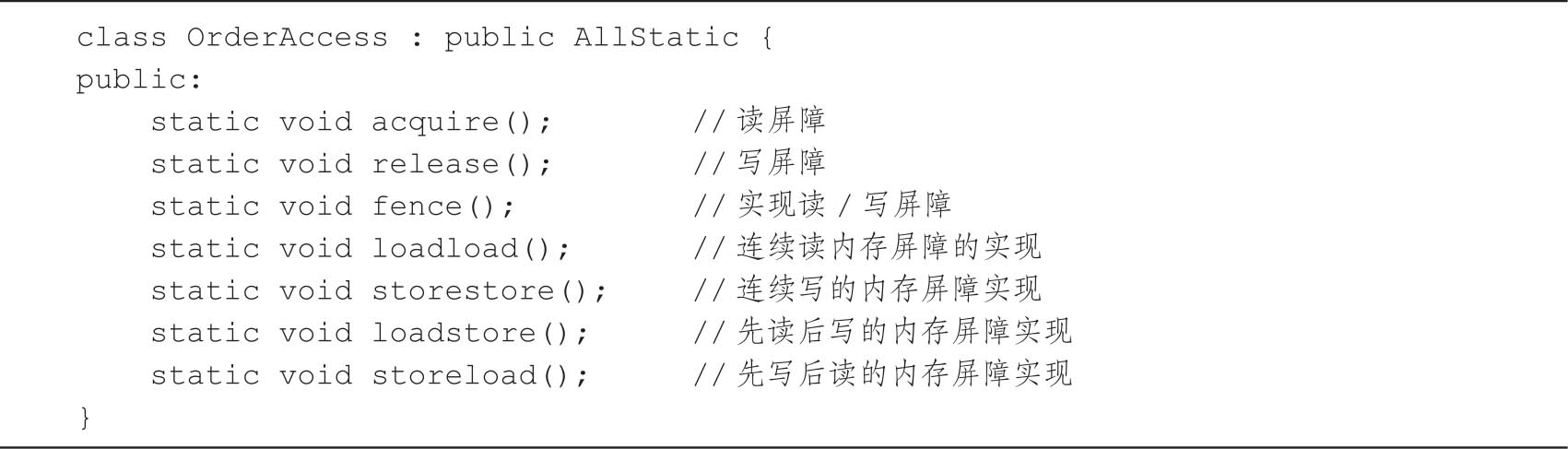 在JVM的源码中,OrderAccess类定义了内存屏障功能,具体实现如代码清单3-13所示。