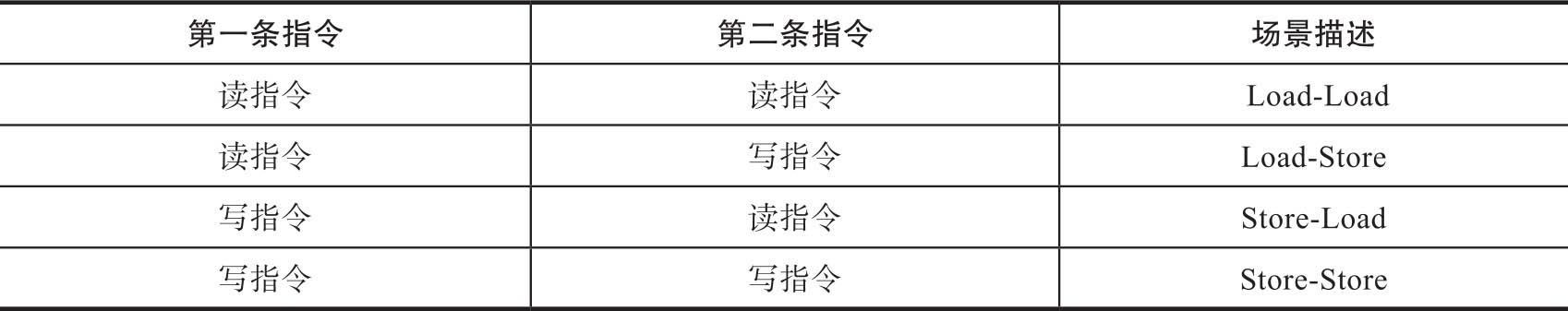 从CPU的角度来说,一般就是数据读指令与数据写指令,两条指令总共会出现以下4种组合场景,如表3-8所示。