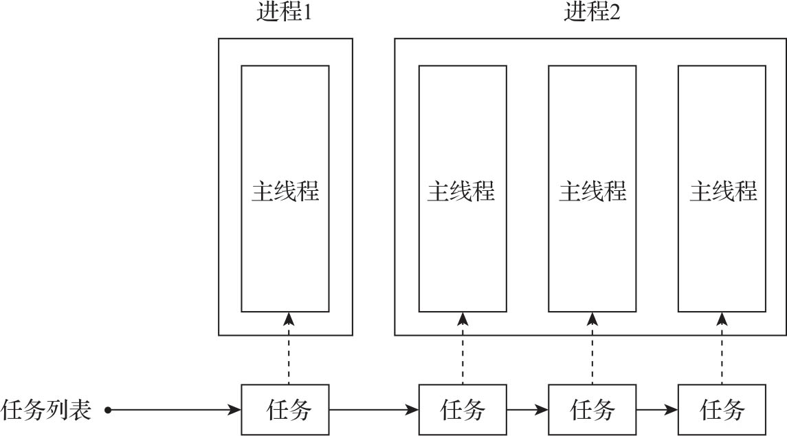 从CPU视角来看 ,所有的进程与线程都是需要执行的任务。Linux会将需要执行的任务放进CPU的任务队列,任务队列按照优先级进行调度。在同一个时刻一个CPU只能执行一个进程或线程的任务。当执行中的任务需要等待其他资源时,就会将任务从CPU任务队列中移除,任务会进入等待状态。CPU任务调度如图1-3所示。