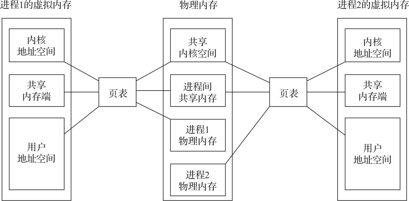 内核使用的空间是共享的,各个进程可以通过系统内核来操作这部分内存空间。进程通信空间是给多个进程或者多个线程间通信用的。每个进程可以在执行数据写入时申请自己独立的内存物理空间。