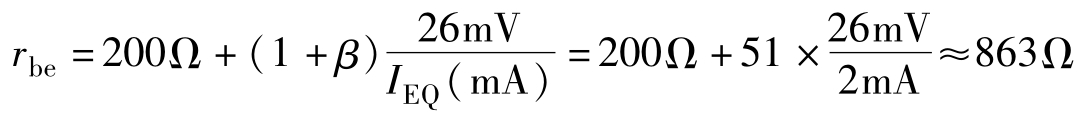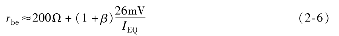 式中, I EQ 为发射极电流的静态值,单位为mA。它与 I BQ 和 I CQ 存在一定的数量关系,因此 I EQ 也可变换成 I BQ 或者取 I CQ ≈ I EQ 进行计算。