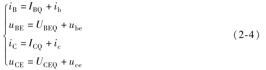 放大电路的这种状态称为动态,如图2-9所示。对放大电路的交流分量 i B 、 u BE 、 i C 和 u CE 的分析称为放大电路的交流分析。