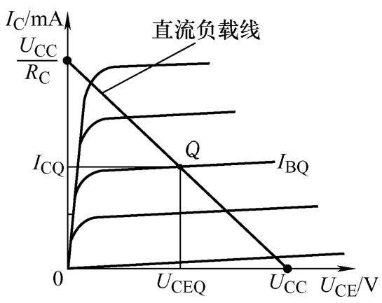 当晶体管处于放大状态,由晶体管的电流放大原理可得流过电阻 R C 的集电极电流 I CQ 为