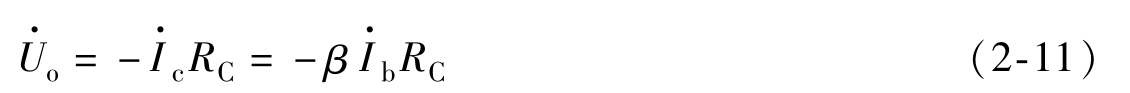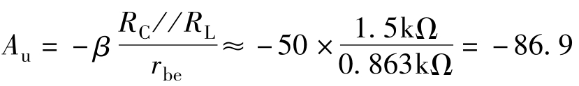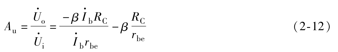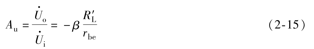 由 A u 的计算公式可知, A u 与 β 、 R C 、 R L 和 r be 有关,式(2-12)和式(2-15)中的负号表示输出电压与输入电压反向。