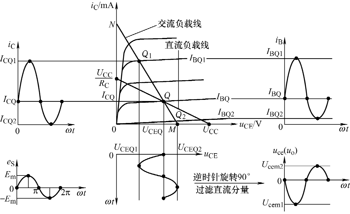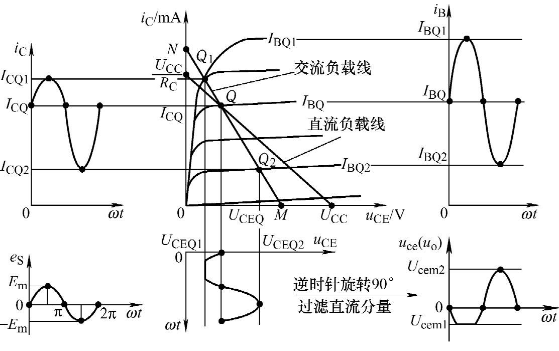 失真现象是在电路动态状态下出现的,在这里需要提到的是交流负载线的概念。当电路有信号源输入,并带有负载电阻