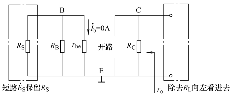 如图2-13b所示,对负载而言,放大电路可等效为一个信号源,其内阻即为放大电路的输出电阻 r o ,它就是从放大电路输出端看进去的等效电阻。