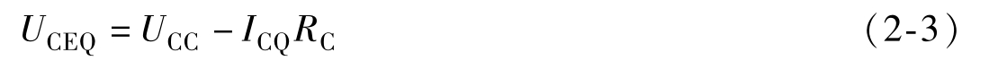 图2-5b所示电路为 U CEQ 的计算电路。由基尔霍夫电压定律可知, U CC = I CQ R C + U CEQ ,可得