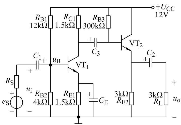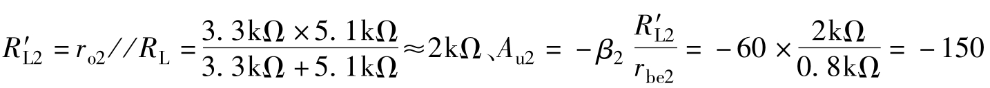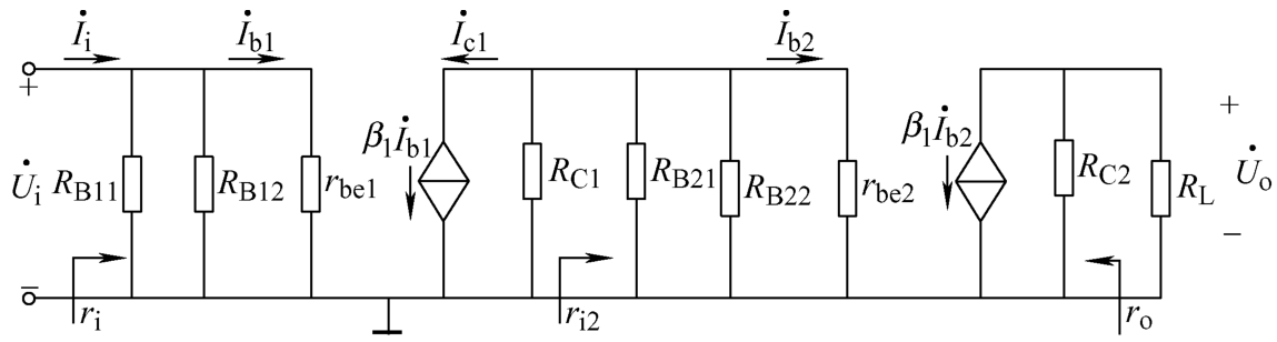 级放大电路的交流等效电路。由图可知,放大电路中前级的输出电压就是后级的输入电压,即