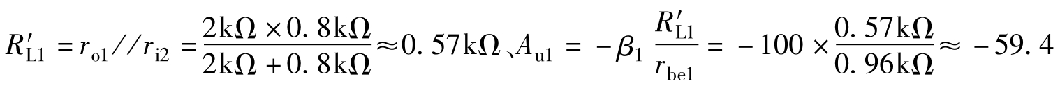 2)两级的放大倍数和放大器对信号源的放大倍数 A u 。
