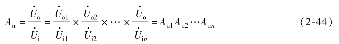 上式表明,多级放大电路的电压放大倍数等于组成它的各级放大电路电压放大倍数之积。